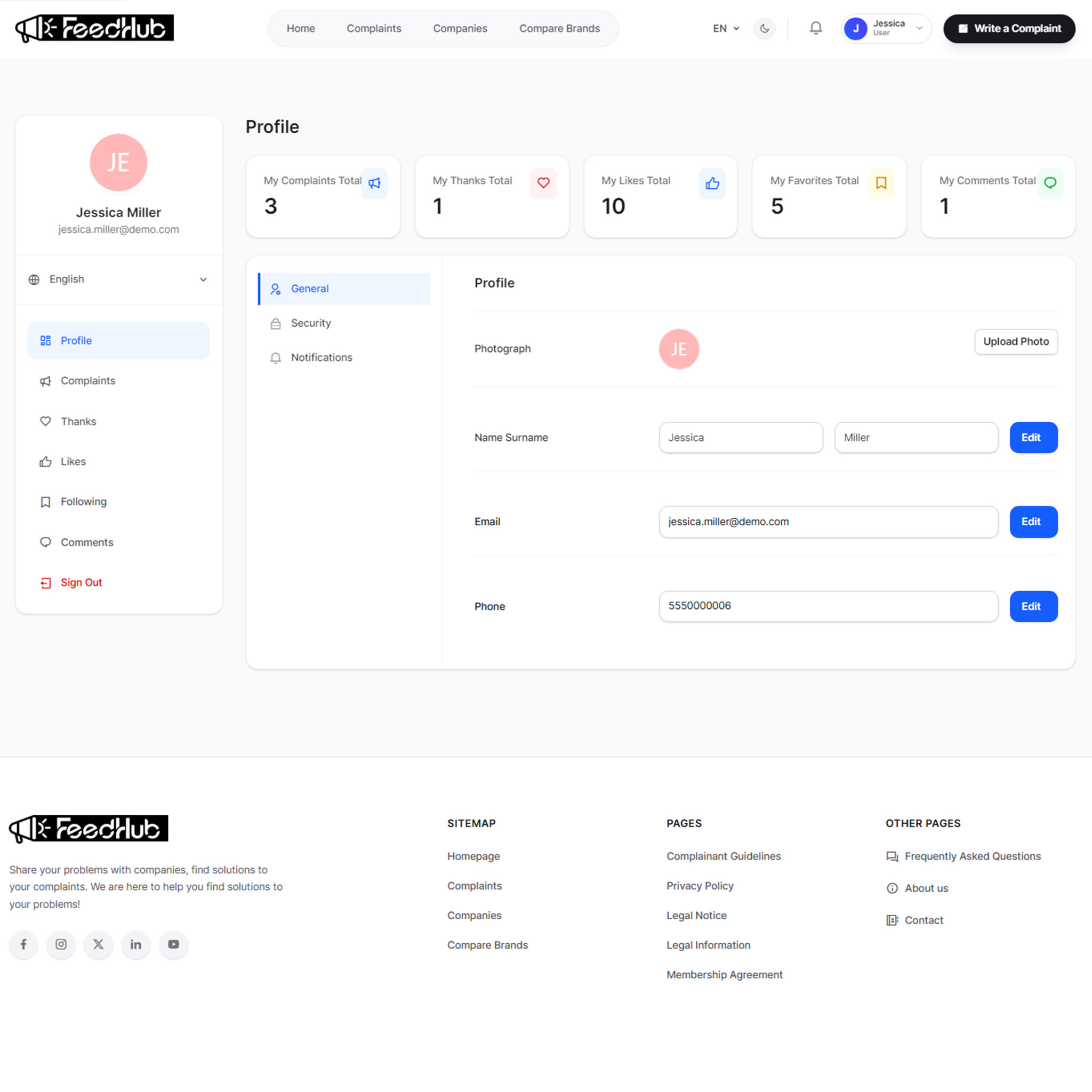 Feedhub, Laravel 13 ve Livewire 4 üzerine inşa edilmiş, tüketicilerin markalar hakkında şikayet ve geri bildirim oluşturmasına olanak tanıyan profesyonel bir platformdur. ŞikayetVar benzeri yapısıyla Türkiye pazarına özel olarak tasarlanmıştır.